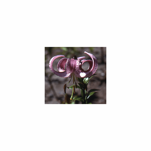 This native of Tibet is found at elevations to 10,000 feet (3000 meters). A taller alpine type reaching over 4 feet, the flowers are Turk's Cap in form and quite fragrant. Carrying upwards of 40 flowers, they are medium to deep pink and heavily spotted in carmine and in nature can be found growing in grassy areas, light scrub, and among conifers on steep slopes in drier areas. Requiring light shade and a well drained loam soil with generous amounts of leaf mold added, it will grow, though not well. This beauty likes to run underground for 2 to 3 feet before emerging. On the plus side though, it produces little bulblets all along the underground portion of the stem.